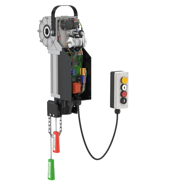 Автоматика стабильно работает в любых условиях. Энкодер обеспечивает точное позиционирование и контроль скорости полотна. А за счет встроенного блока управления привод занимает минимум места.